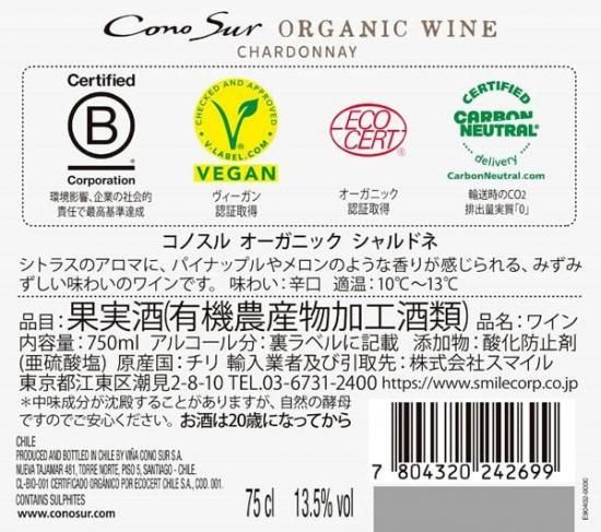 コノスル オーガニック シャルドネ 750ml