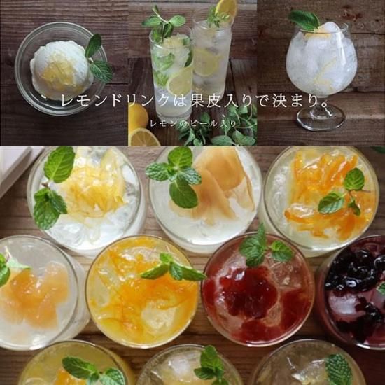 たっぷりレモンのピール(果皮)入りで、カットの異なる3種類のレモン(スライス・ダイスカット・みじん切り)を使用しています。食感が楽しめ、見た目も豪華です。